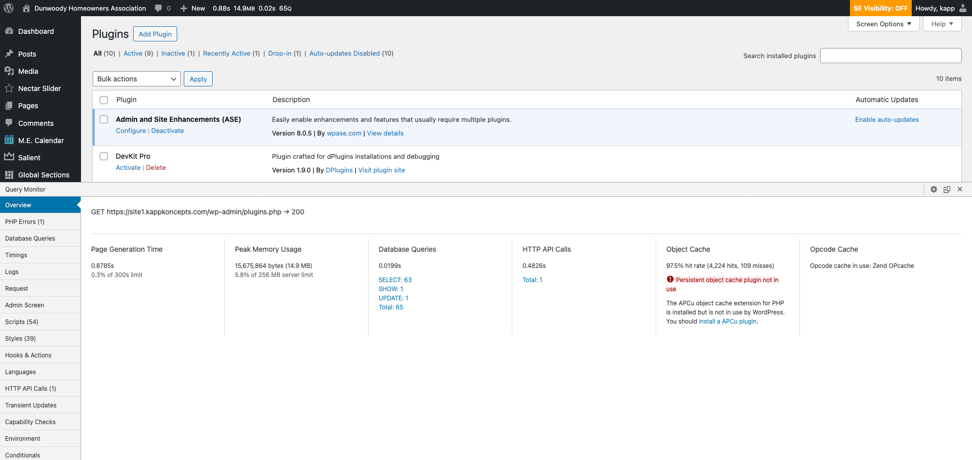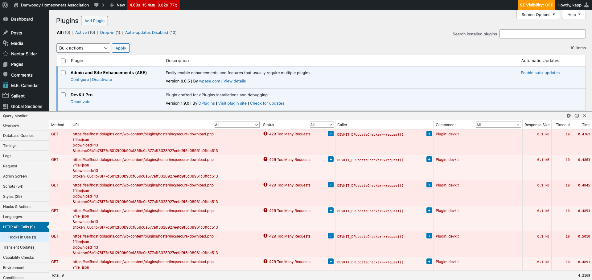 I noticed that my WordPress backend was slow. Upon troubleshooting it looks like devkit was the issue. See screenshots attached.